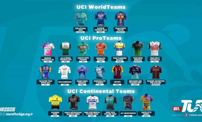 TUR 2026’da 3 WorldTeam, 14 ProTeam, 6 Continental Team kategorisinde toplam 23 UCI Takım ve 27 farklı ülkeden 161 sporcu mücadele edecek. TUR 2026’da mücadele edecek takımlar arasında Türkiye’yi temsil eden 4 Kıta Takımı yer alacak.