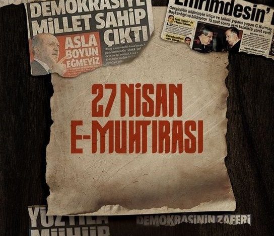 Adalet Bakanı Akın Gürlek, sosyal medya hesabından yaptığı paylaşımda, “27 Nisan E-muhtırası, seçilmiş hükümeti hedef alan ve doğrudan milletimizin egemenlik hakkına ve hukuk devletine karşı bir müdahale girişimiydi. Cumhurbaşkanımız Recep Tayyip Erdoğan’ın millet iradesine dayanan kararlı duruşu, tarihi bir dönüm noktası oldu ve bu girişimi boşa çıkardı. Bugün Türkiye; rotası bildirilerle çizilen değil, iradesini sandıkta ortaya koyan milletin yön verdiği bir hukuk devleti ise, bu Cumhurbaşkanımızın 27 Nisan’da sergilediği güçlü liderlik ve aziz milletimizin bu iradeye verdiği sarsılmaz destekle mümkün oldu” ifadelerini kullandı.