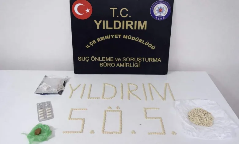 Yıldırım ilçesi Sakarya Mahallesi’nde bir ikamette uyuşturucu madde satışı yapıldığı bilgisi üzerine harekete geçen ekipler, gerekli güvenlik önlemlerinin alınmasının ardından mahkeme kararıyla adrese operasyon düzenledi. Yapılan aramalarda 680 adet Captagon hap, 8 adet Lyrica hap ve 5,52 gram kubar esrar ele geçirildi.