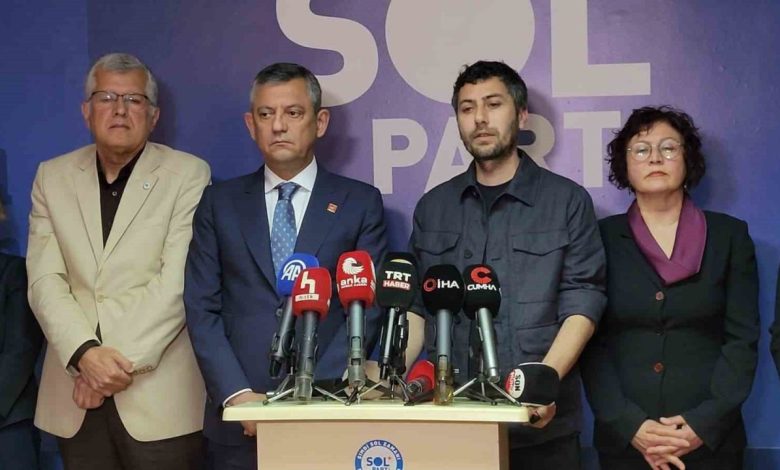 CHP Genel Başkanı Özgür Özel, Sol Parti Genel Başkanı Önder İşleyen ile bir araya geldi. Sol Parti Genel Merkezi’nde gerçekleşen görüşmenin ardından düzenlenen ortak basın toplantısında konuşan Özel, “İran savaşı ve savaşın Türkiye’de özellikle yoksul kesimlere, emekçi kesimlere yüklediği yeni yükler, akaryakıt fiyatlarındaki artışların büyük bir acemilikle doğrudan pompaya yansıtılması ve eşel mobil sistemindeki ÖTV kısmı bittikten sonra bu konuda tedbir almamaları yüzünden yeni bir enflasyon dalgasını oluşturdular. İğneden ipliğe her şeye özellikle de gıdaya inanılmaz zamlar geliyor. Ara seçimi konuşmadan hemen önce ifade etmem lazım ki; bir ara zamla, hem asgari ücrette hem emekli maaşlarında mutlaka bir düzenlemenin yapılıp daha 3 ayda yüzde 10 ve bir yıllık hedef yüzde 16’yken neredeyse 4 ayda bu hedefi tüketecek bir noktadayız. Bunun için dünyadaki bütün demokrasiler toplumun kırılgan kesimleri için tedbirler alıyorlar. Bu konudaki yaklaşımımızı ve Ekonomi Eşgüdüm Konseyimizin önerilerini içeren raporumuzu kendilerine takdim ettik” açıklamasında bulundu.