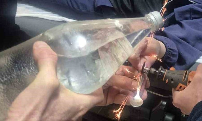 İhbar üzerine harekete geçen Balıkesir Büyükşehir Belediyesi Gönen İtfaiye Grup Amirliği ekipleri, özel ekipman kullanarak yüzüğü dikkatli bir şekilde kesip çıkardı.