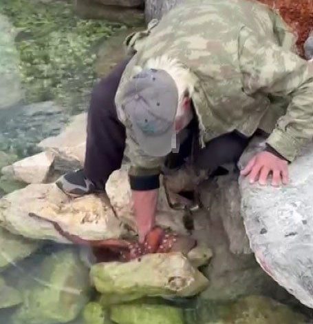 Görenler gözlerine inanamadı: Kayalıktaki dev ahtapotu elleriyle avladı