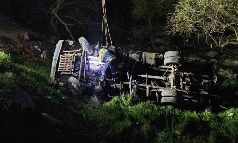 İş makinesi şarampole yuvarlandı: 1 ölü, 1 yaralı