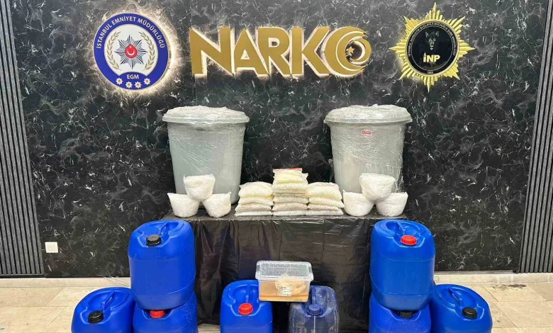 İstanbul’un iki ilçesinde düzenlenen eş zamanlı operasyonlarda, 240 kilo 300 gram kristal ve sıvı metamfetamin ele geçirildi, olayla ilgili 4 şüpheli gözaltına alındı.