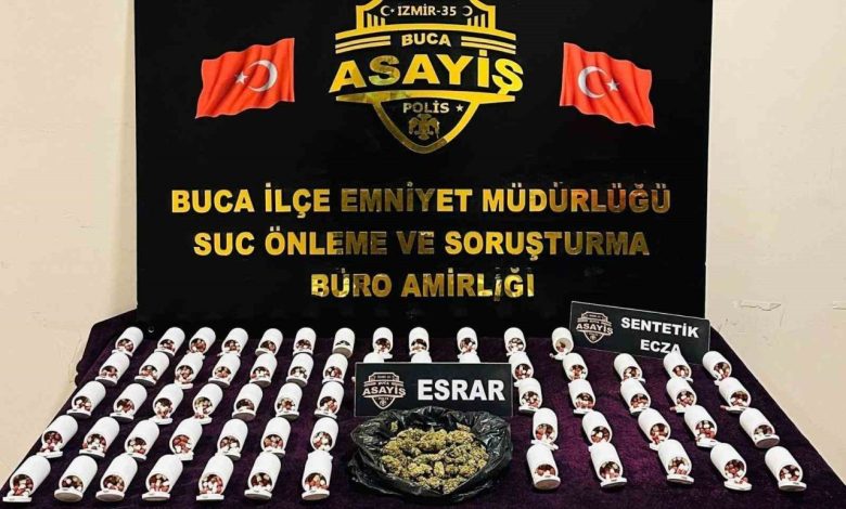 İzmir’in Buca ilçesinde polis ekipleri tarafından uyuşturucu madde ticareti ve imalatına yönelik düzenlenen operasyonda 3 bin 478 adet sentetik ecza ile 150 gram esrar ele geçirilirken, olayla ilgili bir şüpheli şahıs gözaltına alındı.