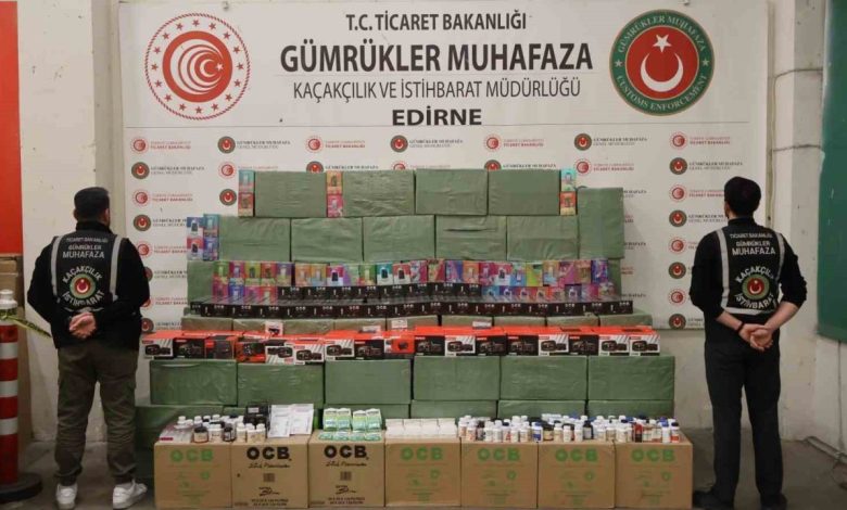 Gümrükler Muhafaza ekiplerince 19 Nisan’da Kapıkule Gümrük Sahası’na gelen tır ve çekici risk kriterleri çerçevesinde kontrole tabi tutuldu. Yapılan detaylı aramada faturasız, belgesiz, gümrüğe beyan edilmeyen ve ticari miktar ve mahiyet arz eden 10 bin 400 adet elektronik sigara, 720 bin adet sigara filtresi, 84 adet oto parça, 215 kutu vitamin ve kişisel bakım ürünü, 2 bin 520 adet ilaç cinsi eşya olmak üzere çok sayıda kaçak eşya ele geçirildi.