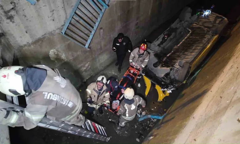 Kartal’da alkollü taksi sürücüsü 5 metrelik dereye uçtu