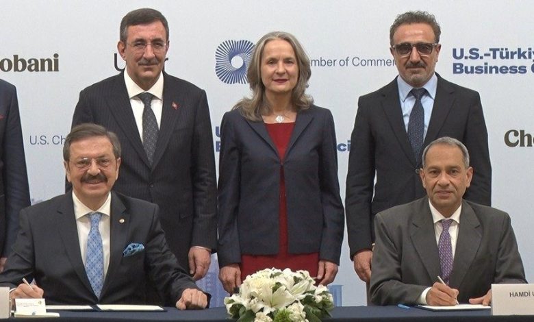 Türkiye Odalar ve Borsalar Birliği ile ABD Ticaret Odası’na bağlı ABD-Türkiye İş Konseyi arasında yuvarlak masa toplantısı gerçekleşti. Cumhurbaşkanı Yardımcısı Cevdet Yılmaz, TOBB Başkanı Rifat Hisarcıklıoğlu ve ABD Ticaret Odası’na bağlı ABD-Türkiye İş Konseyi Başkanı ve Chobani’nin Üst Yöneticisi (CEO) Hamdi Ulukaya’nın katılımıyla gerçekleşen toplantıda ortak ikili ticari ve ekonomik ilişkiler ele alındı.