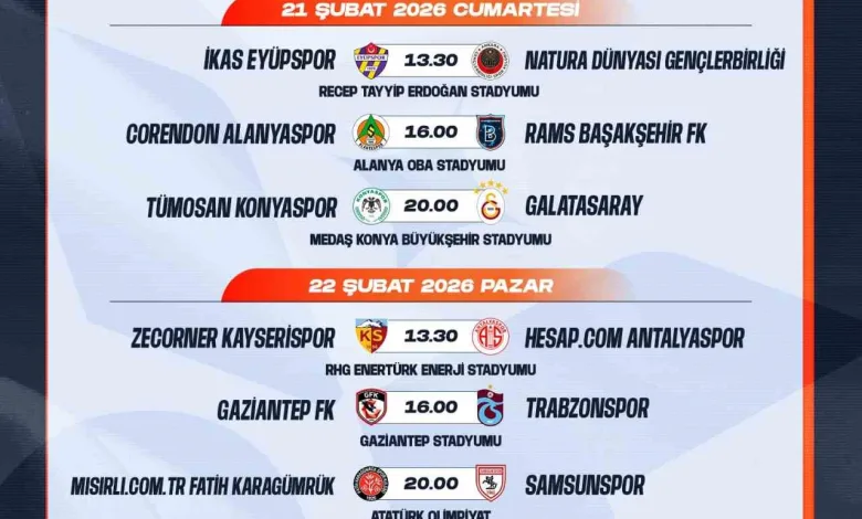 Trendyol Süper Lig’de 23. hafta programı şöyle: