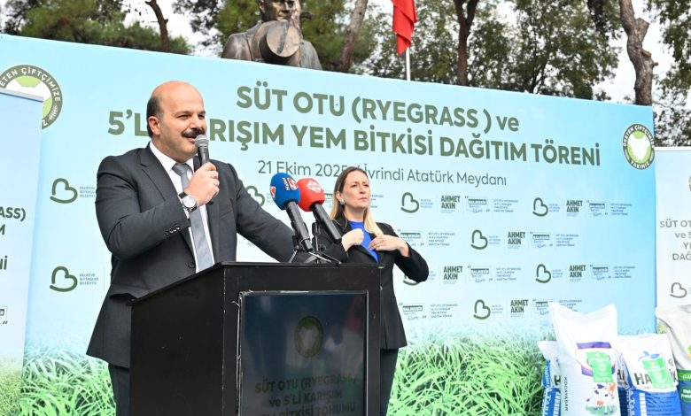 Üretim ve üreticinin en büyük destekçisi olan Balıkesir Büyükşehir Belediye Başkanı Ahmet Akın, çiftçilere desteklerini aralıksız sürdürüyor. İvrindi’de “Süt Otu ve 5’li Karışım Yem Bitkisi Tohumu Dağıtım Töreni”nde konuşan Akın, “Yaklaşık 2 bin üreticimiz, bu destekten faydalanarak toplamda 140 ton yem bitkisi tohumu ekecek.Bu sayede üreticilerimiz, kendi kaba yemlerini üretecek. Böylece hem maliyetler azalacak hem de işletme gelirleri artacak.”dedi.